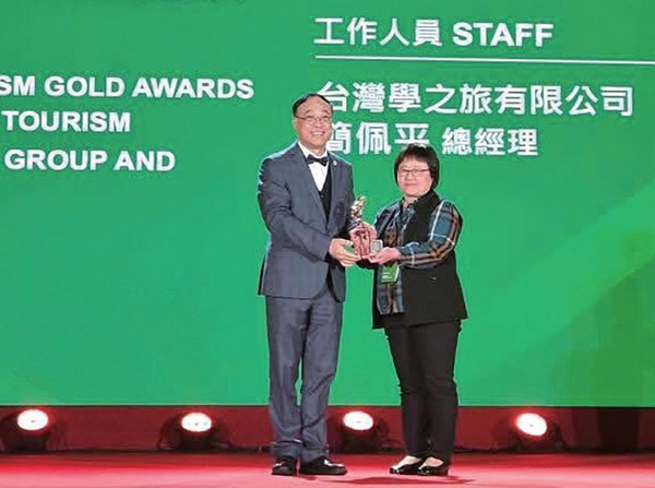 ▲台灣學之旅總經理簡佩平(右)獲頒第2屆台灣觀光金獎熱心觀光事業個人獎。